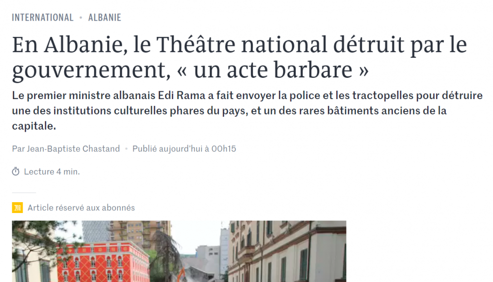 Kryeministri shqiptar Edi Rama dërgoi policë dhe ndihmës të tjerë shtetërorë, për të shkatërruar një nga institucionet kryesore të vendit dhe nga ndërtesat e pakta të vjetra në kryeqytetin e shqiptarëve, Tiranë