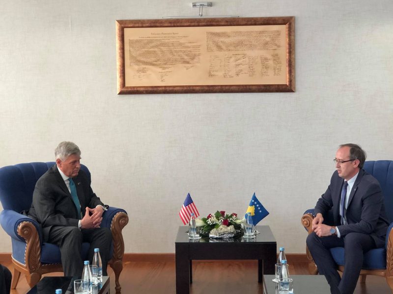 Ambasadori i Shteteve të Bashkuara të Amerikës , Philip Kosnett ka mbërritur në objektin e Qeverisë ku u mirëprit nga Kryeministri Avdullah Hoti.