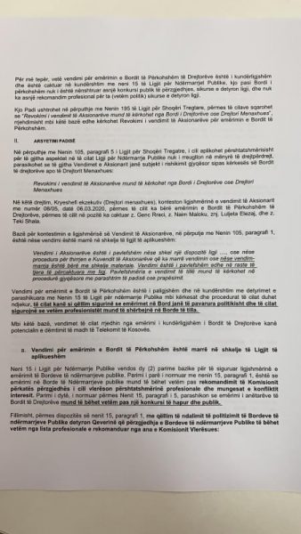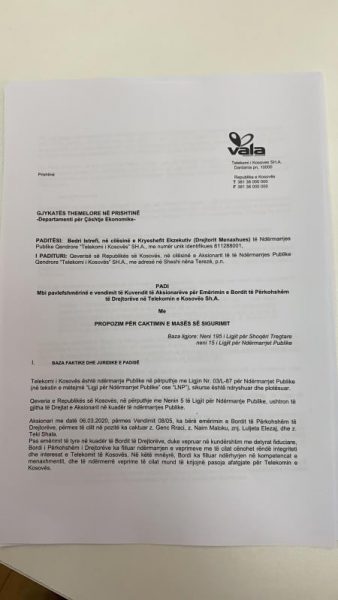 Padinë që e ka siguruar gazeta Blic thuhet se “pas emërimit të tyre në kuadër të Bordit të Drejtorëve duke vepruar në kundërshtim me detyrat, Bordi i Përkohshëm ka filluar ndërmarrjen e veprimeve me të cilat synohet rëndë integriteti dhe interesat e Telekomit të Kosovës në këtë mënyrë Bordi ka filluar të ndërhyjë në kompetencat e menaxhmentit”.