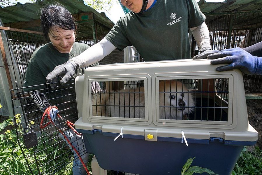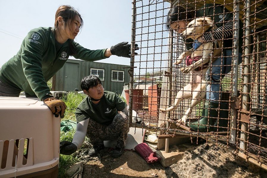 Me dhjetëra qen, të rritur për t’u kthyer në ushqim për njerëzit, janë shpëtuar nga një fermë në Hongseong, në Korenë e Jugut, nga shoqata Humane Society International.