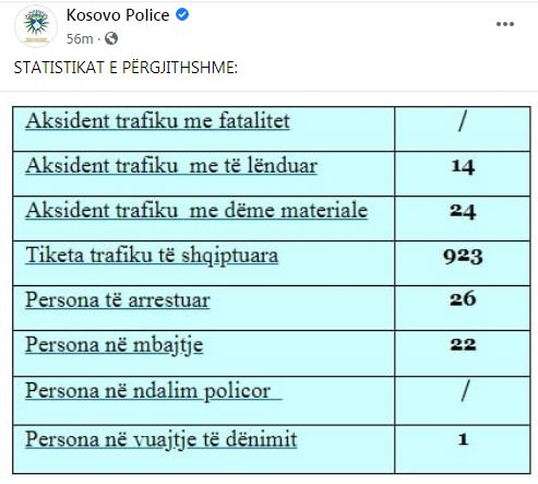 Gjatë 24 orëve në Kosovë kanë ndodhur 38 aksidente, në 14 prej tyre ka pasur të lënduar ndërsa 24 kanë ndodhur me dëme materiale.