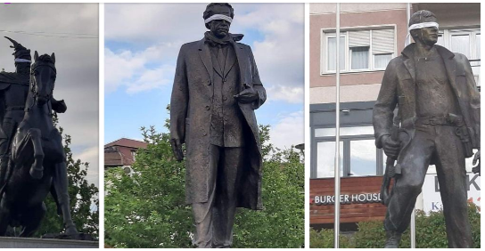 Tri shtatoret që gjenden nëpër sheshet e Prishtinës, ajo e heroit Zahir Pajaziti, ish-Presidentit Ibrahim Rugova dhe heroit të gjithë shqiptarëve, Skënderbeu sot kanë një pamje tjetër. Dikush ka ndërmarrë veprim që t’u mbulojë sytë...