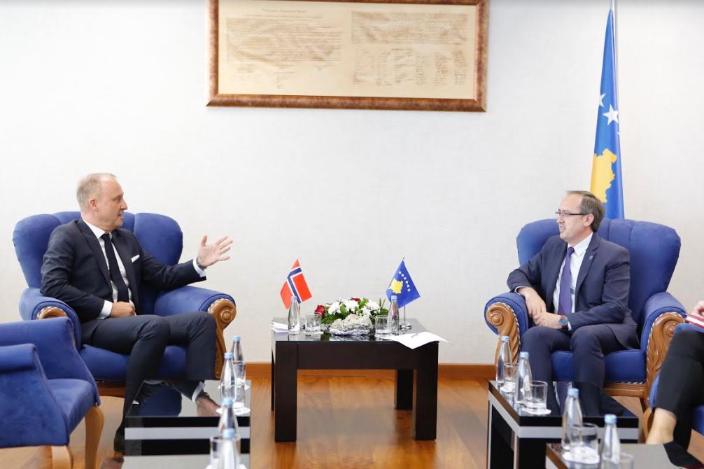 Kryeministri i Republikës së Kosovës, Avdullah Hoti, ka pritur në takim Ambasadorin e Norvegjisë në Kosovë, Jens Erik Grøndahl.Hoti e njoftoi mysafirin për prioritetet e Qeverisë së Kosovës, në luftën kundër pandemisë COVID-19, masat për...