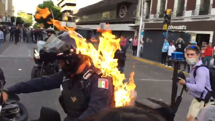 Një oficeri policie i është vënë zjarri pas një konfrontimi me demonstrues kundër dhunës në Meksikë. Protestat nisën pas vdekjes së një vendasi disa ditë më parë, pak pas arrestimit nga policia. Incidenti i rëndë...