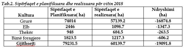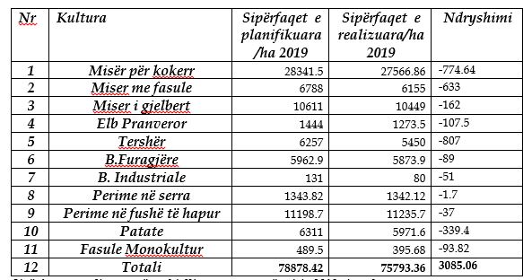 Hapësirën më të madhe të tokës së punuar e kanë zënë drithërat. Sipas statistikave të MBPZHR-së, rreth 60 mijë hektarë tokë janë mbjellë vetëm me grurë, elb, thekër dhe bimë farogjere për këtë vit.