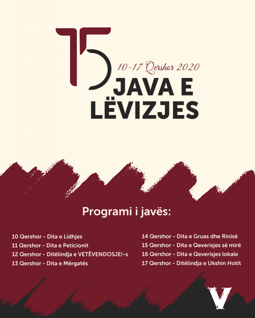 Vetëvendosje ka njoftuar se nga e mërkura fillon Java e Lëvizjes, ku janë planifikuar të mbahen disa aktivitete.
