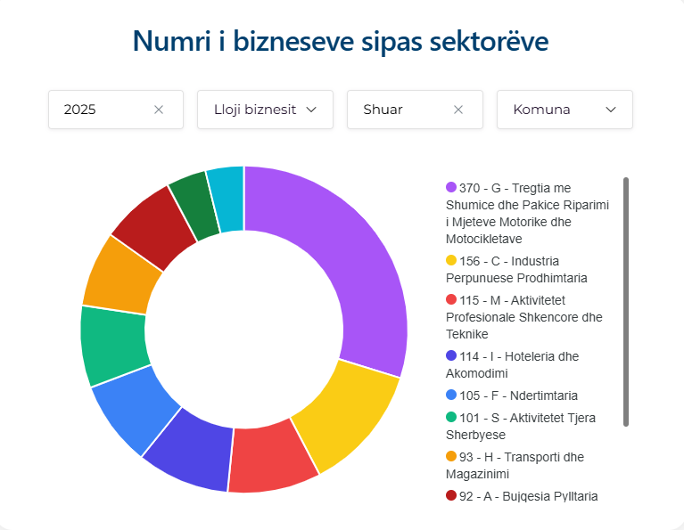 Po ashtu, sipas ARBK-së, bizneset sipas sektorëve që kanë pasur shuarjen më të madhe janë 370 të tregtia me shumicë dhe pakicë, riparimi i mjeteve motorike dhe motocikletave, 156 industria e përpunuesve, prodhimtaria, pastaj 115 të aktivtiteve profesioanle dhe teknike, mandej 114 biznese që janë shuar janë të sektorit të hotelerisë dhe akomodimit, 105 biznese të shuara nga sektori i ndërtimtarisë, 93 nga sektori i transprotit dhe 92 nga sektori bujqësor dhe pylltarisë.